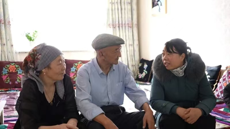 2月18日上午,巴里坤镇广东路社区网格员来到辖区居民樊玮家里,向老人宣传:从今年1月起,巴里坤县80至89周岁老年人高龄津贴每月调整到300元。