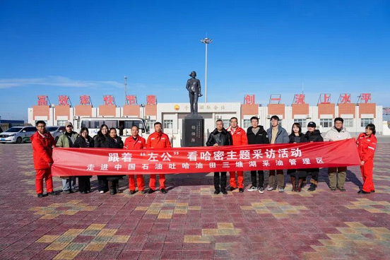 戈壁茫茫,钻塔巍巍。11月27日,由中央、自治区媒体与哈密市融媒体中心、农十三师融媒体中心、吐哈油田公司新闻中心及区县融媒体中心组建的“跟着‘左公’看哈密”主题采访团走进巴里坤县第一站——中国石油吐哈油田公司三塘湖采油管理区,在现代化的CCUS-EOR先导实验站感受绿色油田的科技脉动,在杨拯陆纪念铜像前追忆石油先辈的奉献精神,以石油精神传承时代命脉。