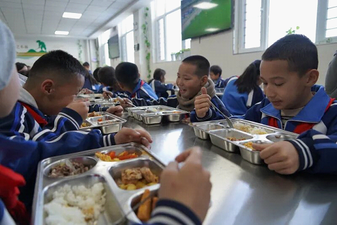 巴里坤县第二中学五年级4班学生巴丽努尔·马吾列提说:“学校的饭特别好吃,尤其是鸡翅和抓饭。我们每天在学校可以吃到自己喜欢吃的饭,我们都很开心。”