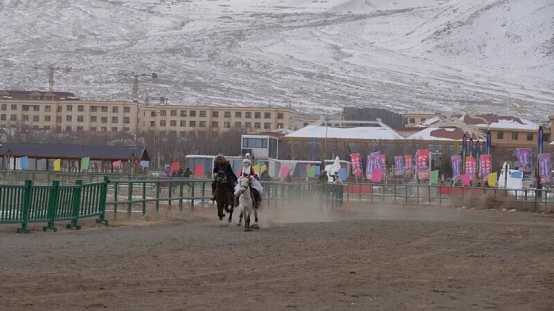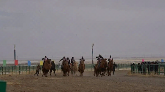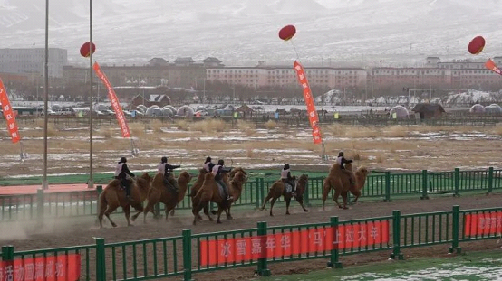 赛场上,20峰骆驼率先登场,展开3公里激烈角逐;24匹两周岁赛马奋力奔跑,角逐5公里决赛桂冠;18匹本土赛走马、47匹巴里坤马依次驰骋雪地赛道,骑手们驭马驰骋、风驰电掣,精湛的雪地骑术引得现场观众掌声雷动、喝彩不断。