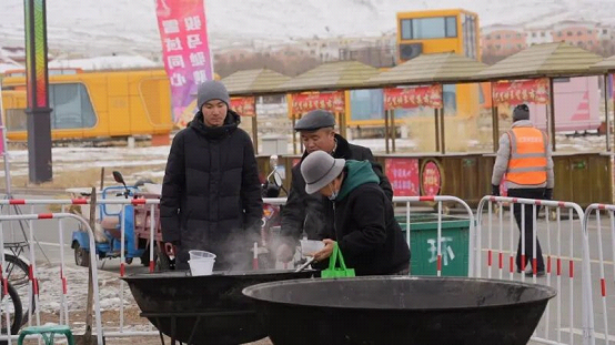 乌鲁木齐游客张自超说:“今天来到巴里坤感觉非常棒,体验感也很棒,这里的人很热情、很淳朴,还有免费的羊肉汤可以喝,让我感受到了浓浓的热情。”