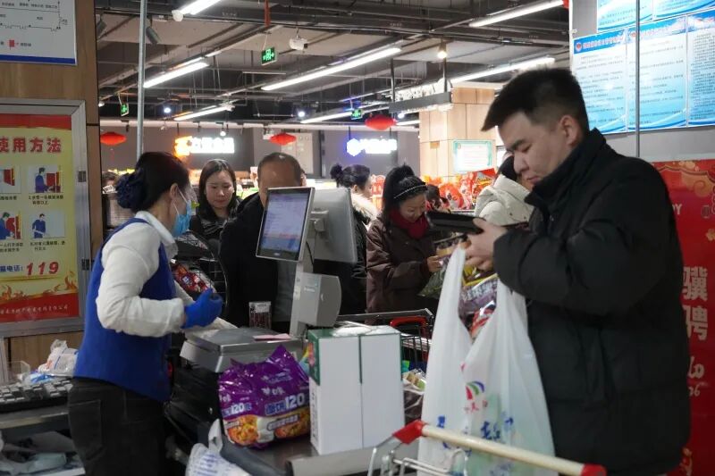 在巴里坤天马超市国泰店,年味愈发浓郁,米面粮油、生鲜果蔬、年货礼盒等商品区域摆满了各类商品,前来采购的顾客络绎不绝。巴里坤镇居民刘润娥夫妇早在前一天就用政府消费券在超市买了些年货,今天又打算用政府消费券挑选生鲜,为年夜饭做足准备。