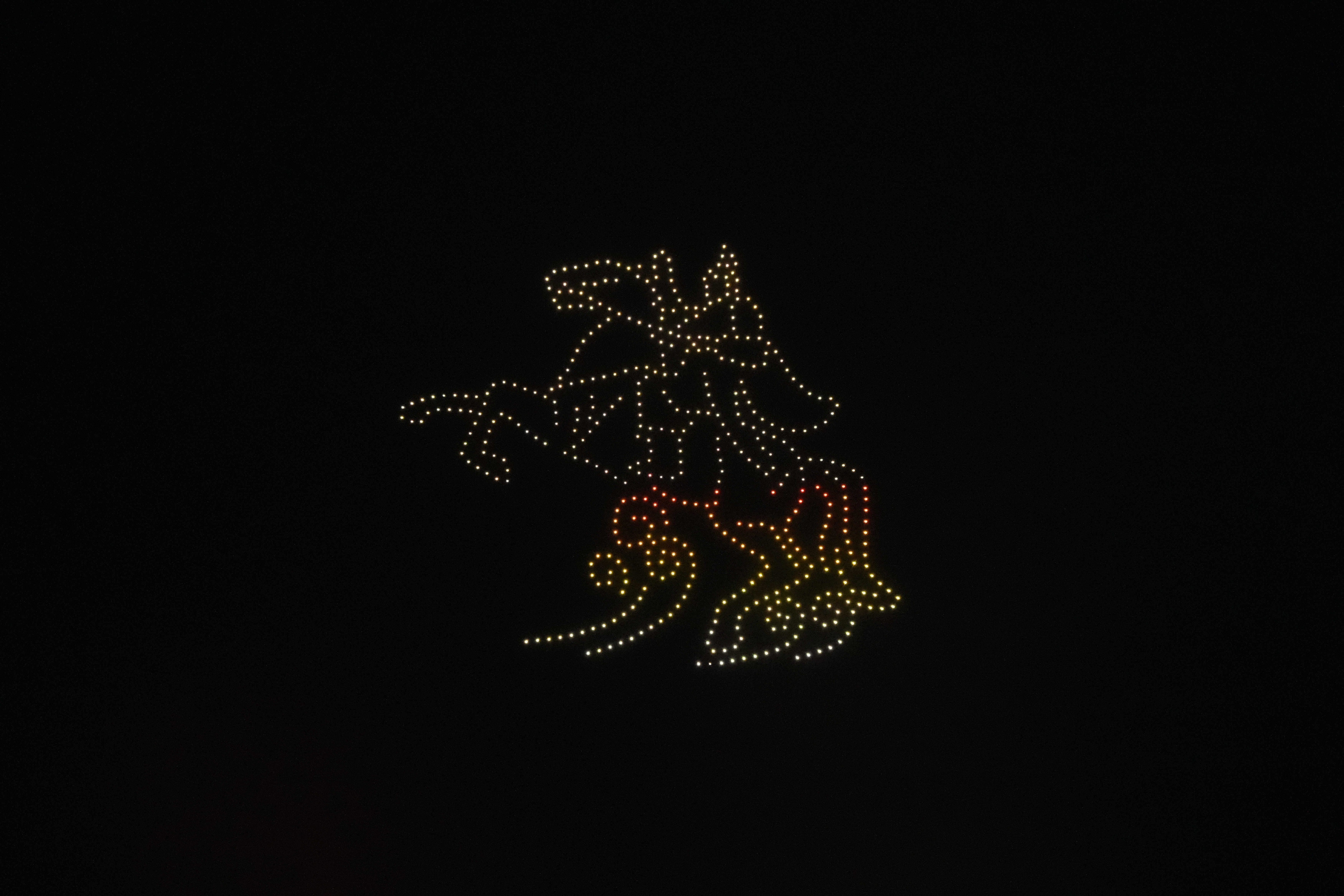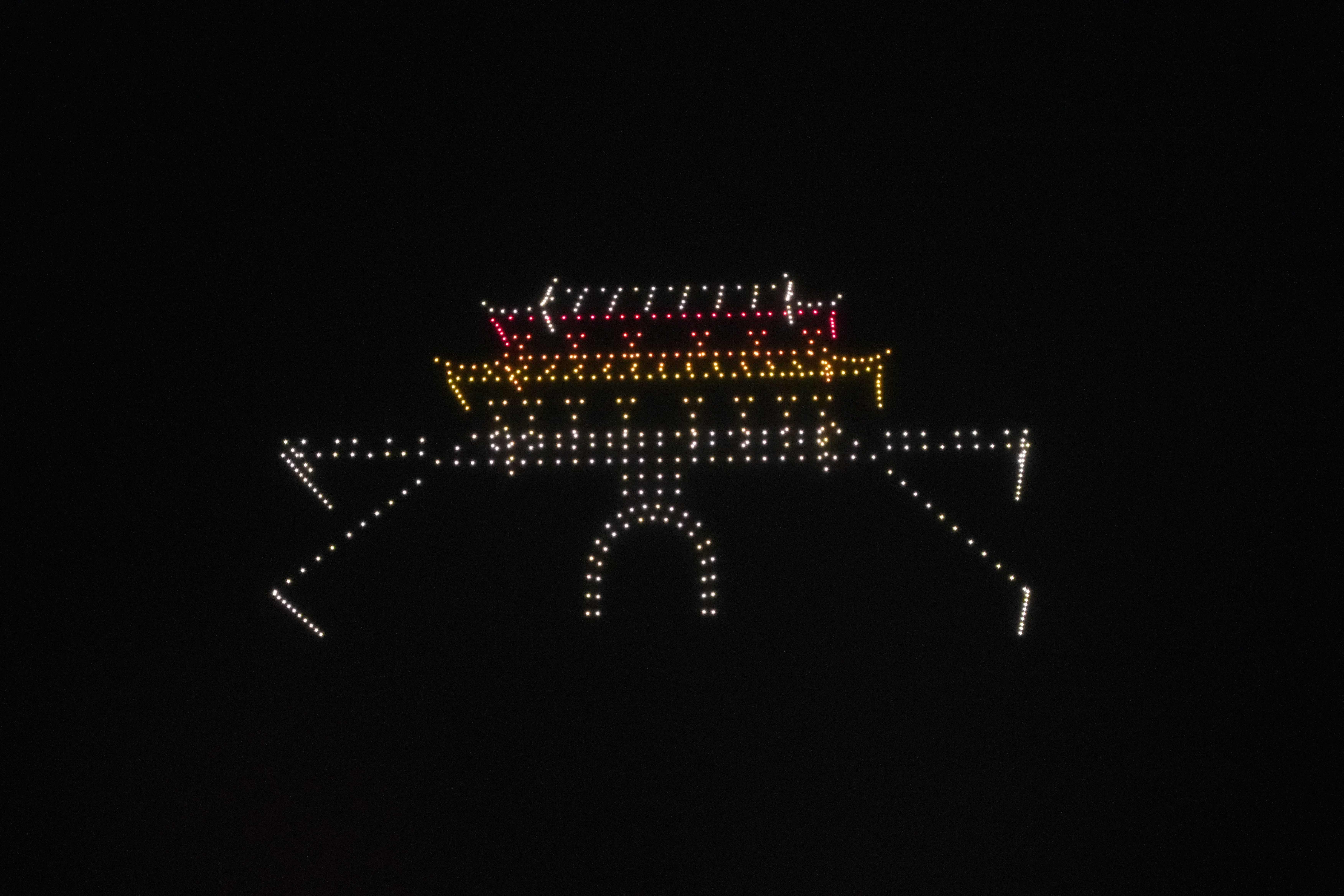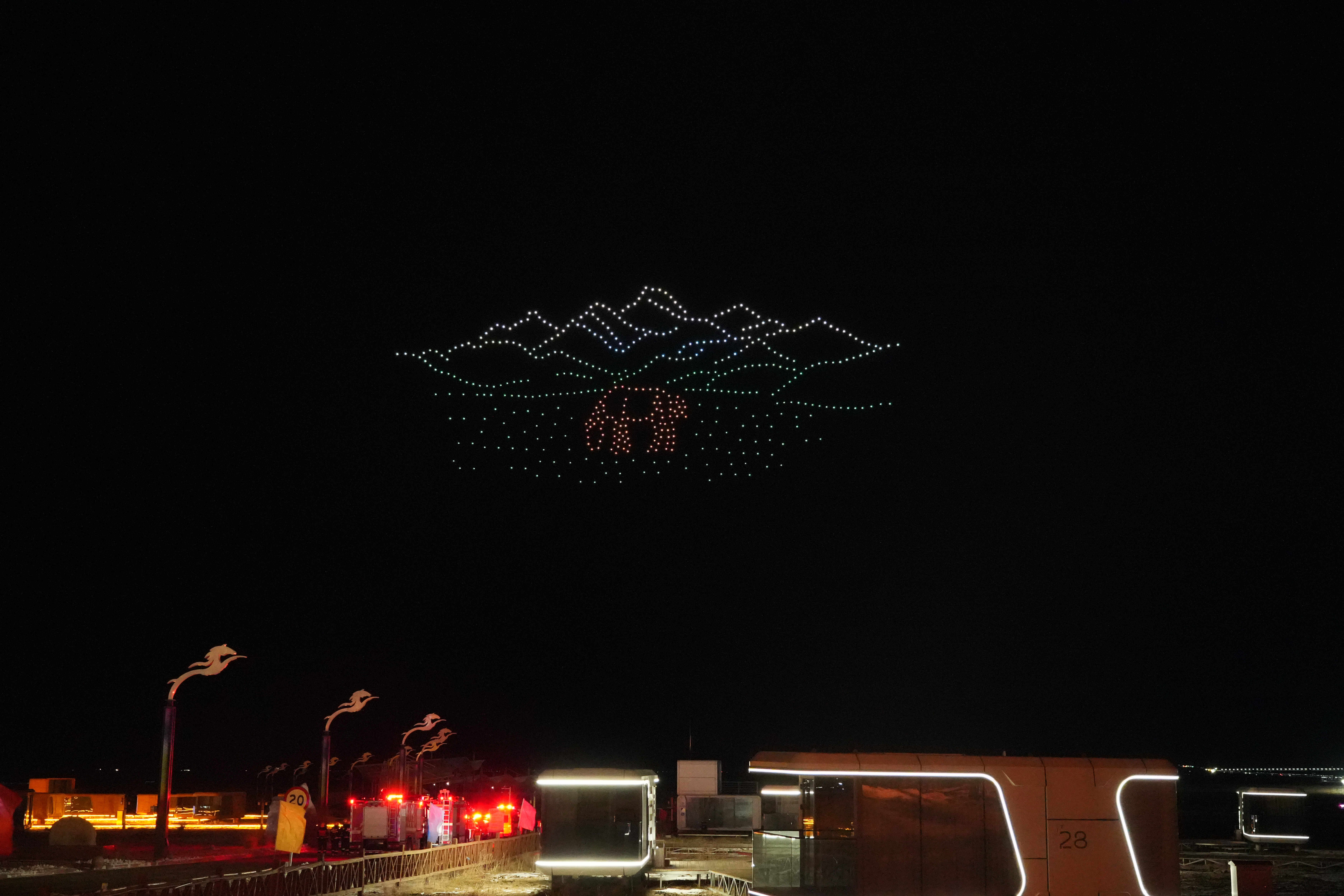 当天晚上9点,伴随着欢快的旋律,500架无人机编队腾空而起,以夜空为幕,光影为笔,在浩瀚的夜幕中依次变幻出——“祝巴里坤各族人民元宵快乐”、“巴里坤马”、“新型能源之城”、“风电”、“产业融合之城”、“现代化煤矿”、“农业丰收”、“巴里坤机场”、“生态人文之城”、“巴里坤草原”、“得胜门”、“岳钟琪大将军像”12组精美图案和字样,为各族群众带来了一场科技与艺术交融的视觉盛宴,将元宵节的喜庆氛围推向了高潮。