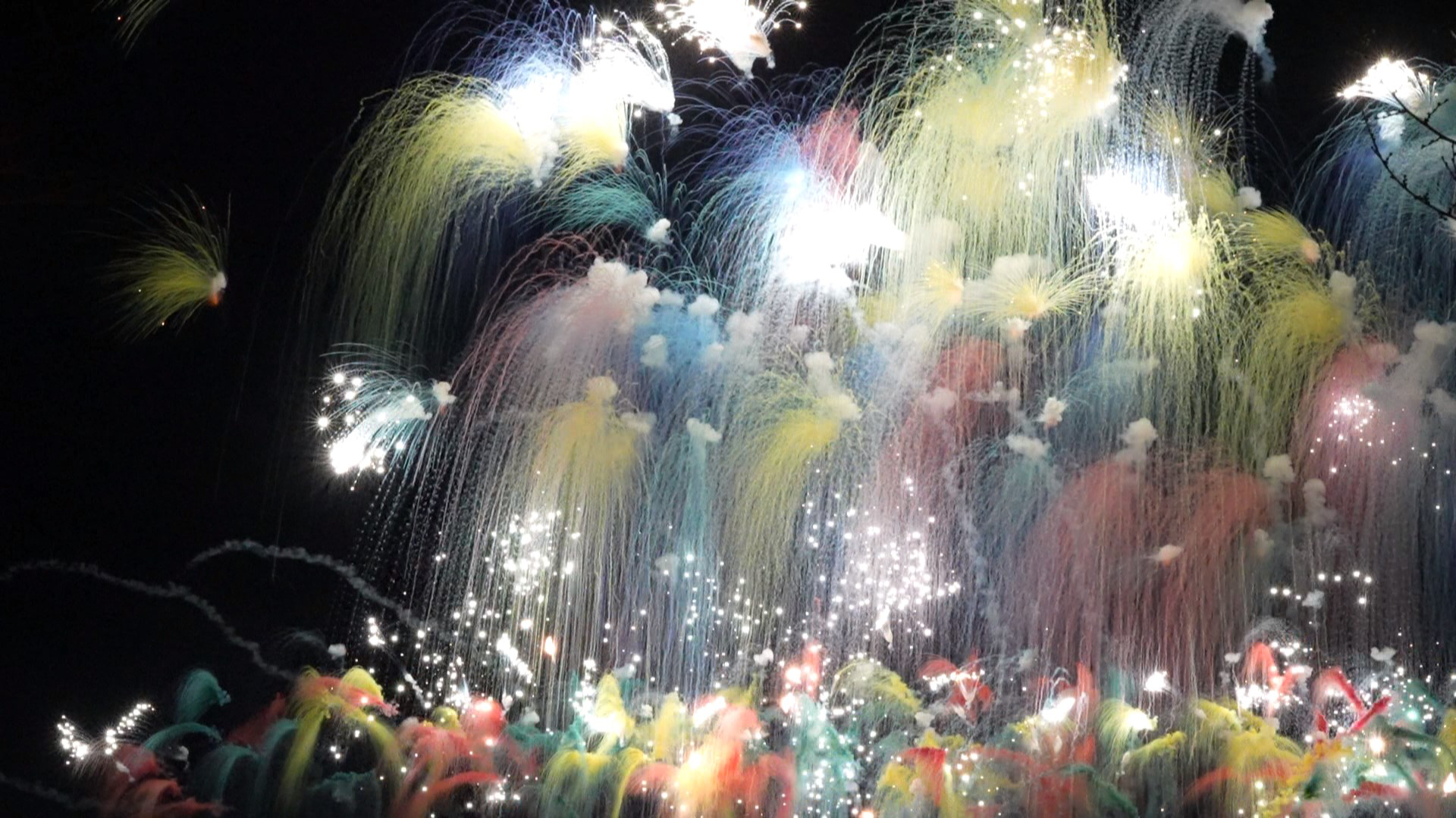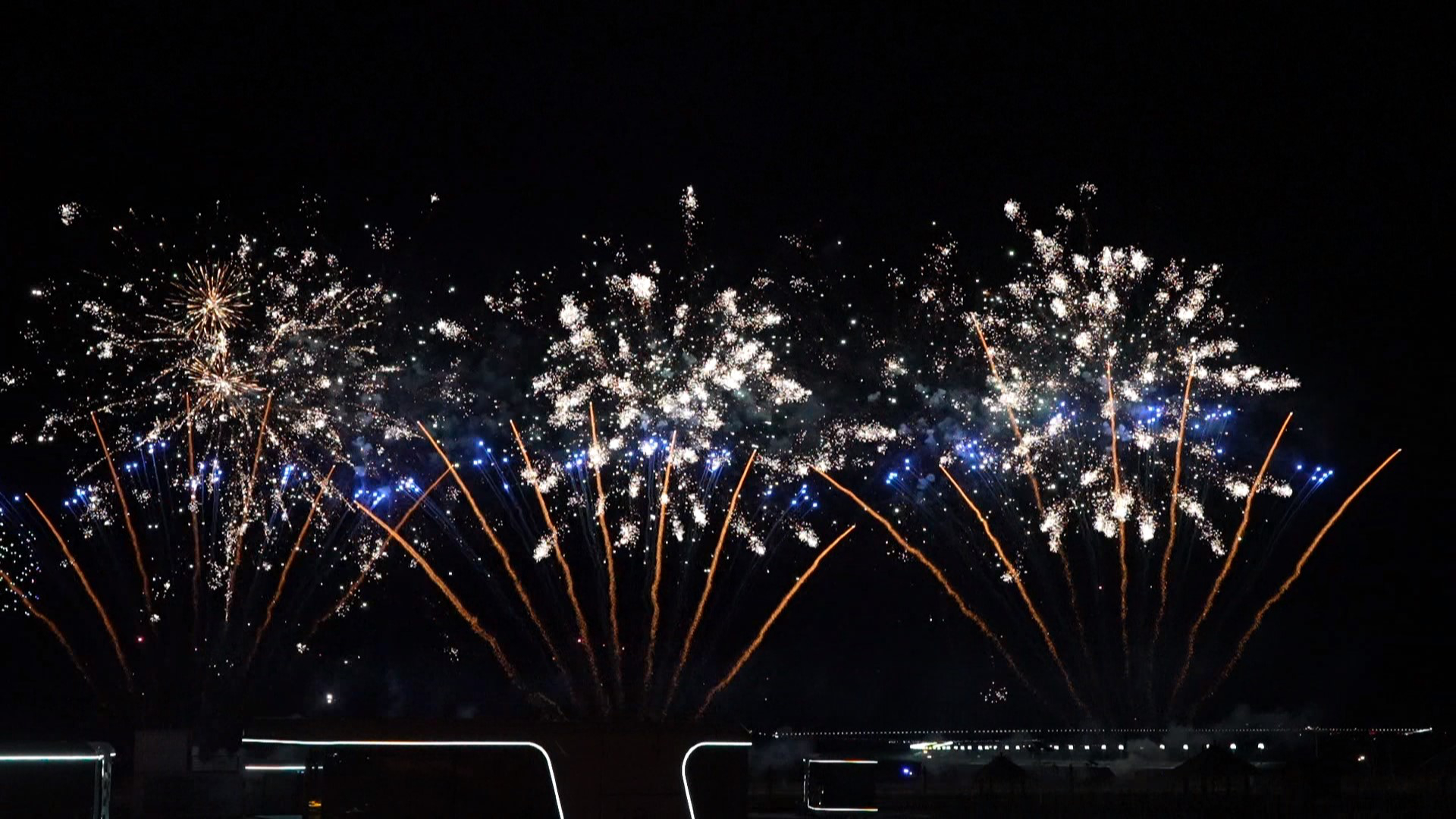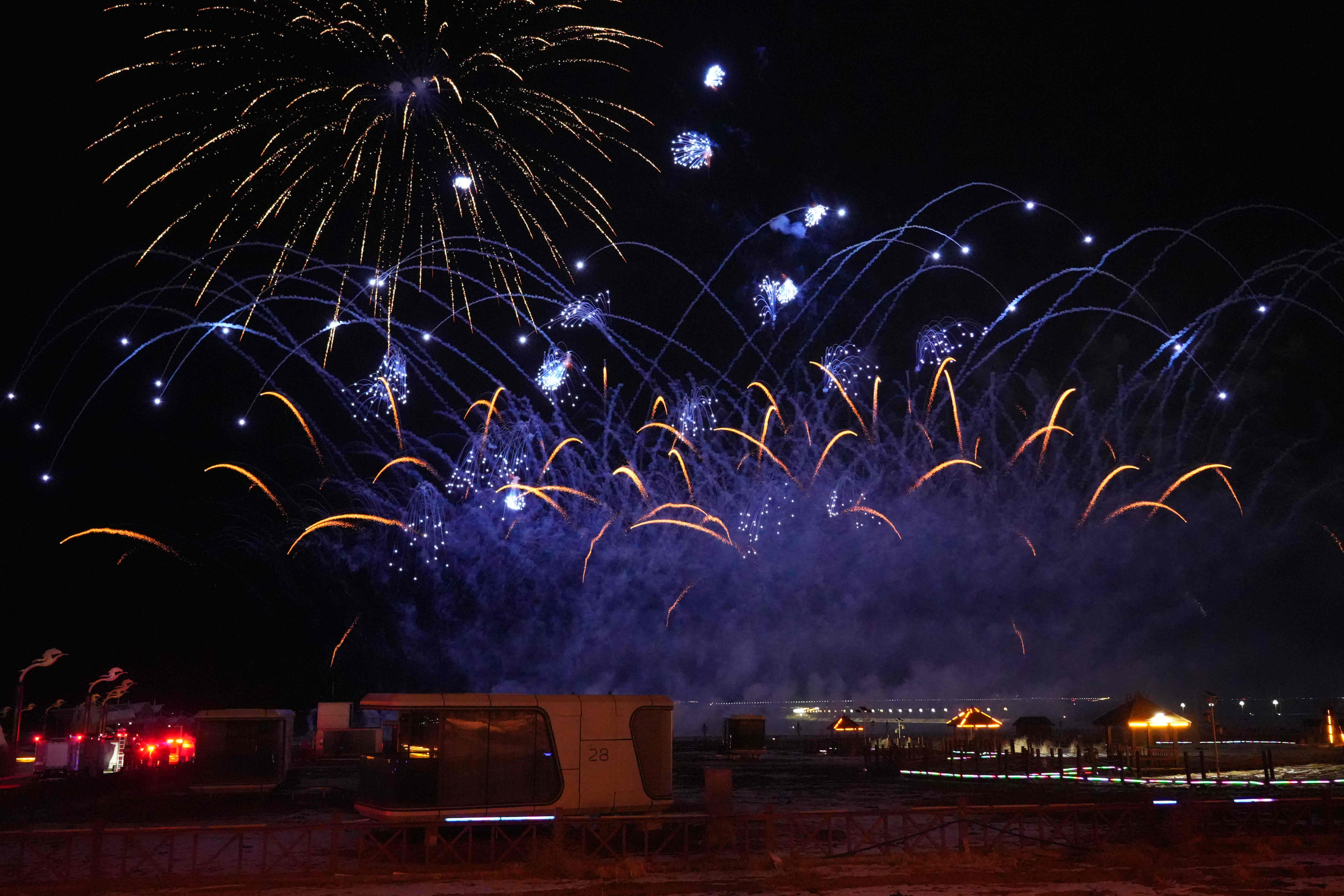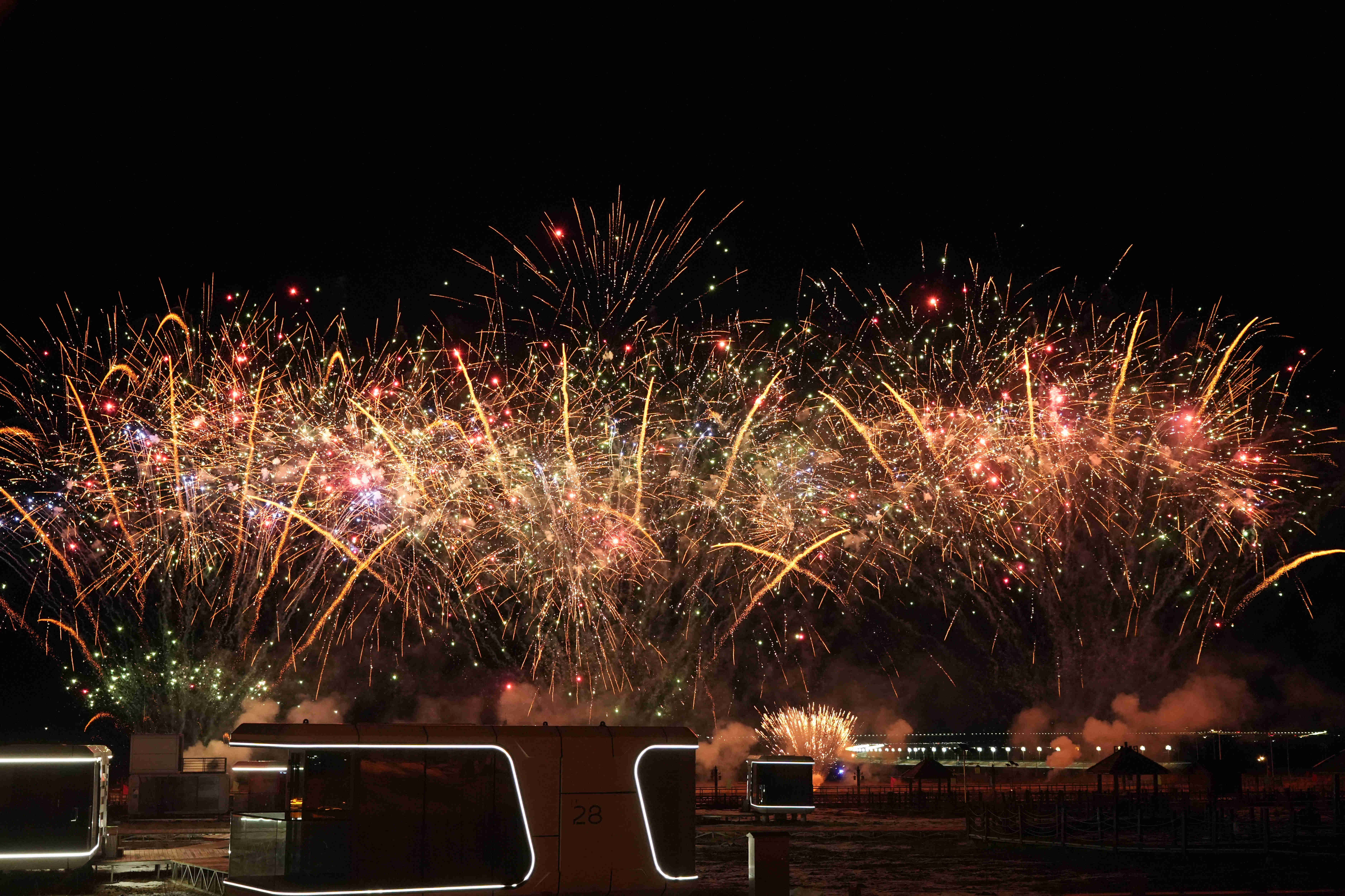 现场观众的欢呼声与绽放的烟花交织在一起,节日气氛持续升温。